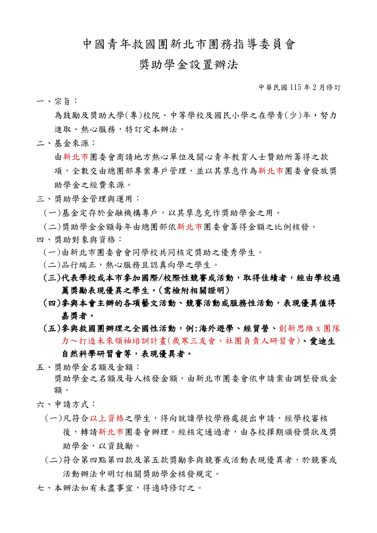 中国青年救国团新北市团务指导委员会奖助学金设置办法