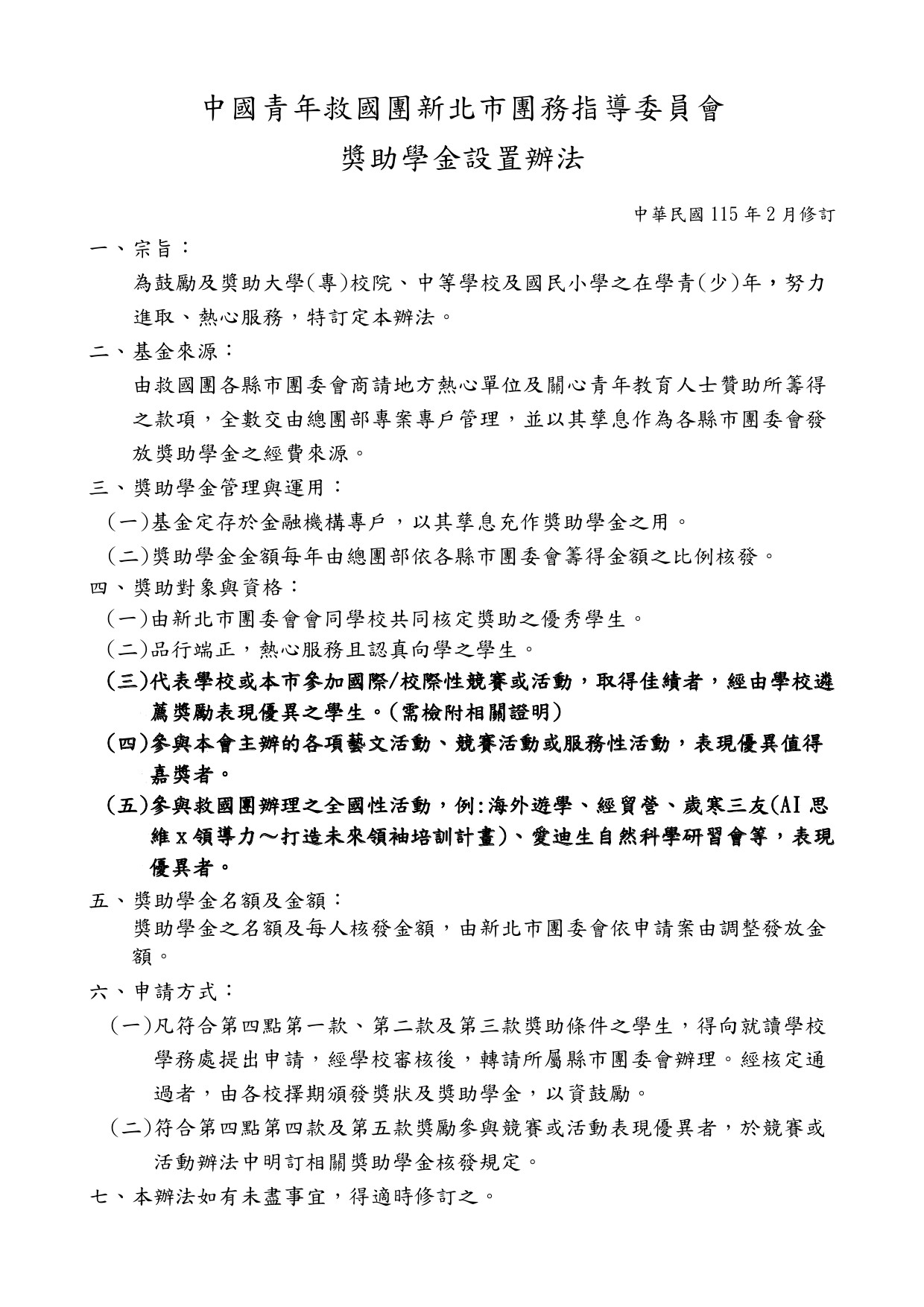 中國青年救國團新北市團務指導委員會獎助學金設置辦法
